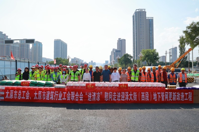 8月14日,太原市建筑行業(yè)工會(huì )聯(lián)合會(huì )“送清涼”慰問(wèn)活動(dòng)走進(jìn)太原市政集團承建的迎澤大街(西段)地下管網(wǎng)更新改造工程項目現場(chǎng)。