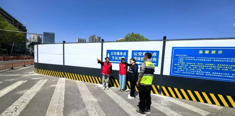 施工以來(lái),集團公司全程安排專(zhuān)人值守地鐵口交通導行,多舉措升級現場(chǎng)安全防護設施——開(kāi)辟行人安全通道,協(xié)調劃定“公交專(zhuān)用通道”,在井蓋四周設置緩坡與明黃警示帶,為圍擋加裝柔和燈帶……以細微處的貼心舉措,實(shí)現“施工便民不擾民”。